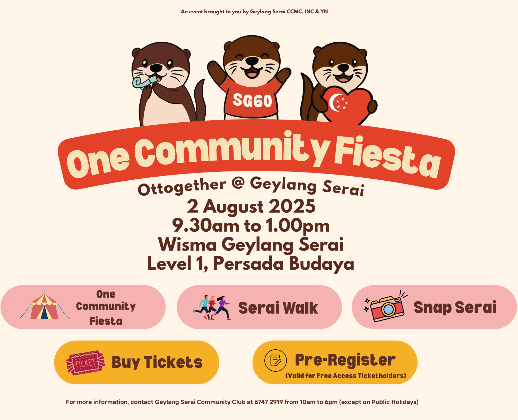 Venue: Wisma Geylang Serai, Level 1, Persada Budaya